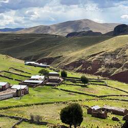 The next morning it's a bright sunny day. We have had relatively few of these on our trip. The road is small and quiet and heads up and down and up and down over remote and pretty pastures. We say hi to the Alpacas - who wouldn’t? Then roll into a small village (Checca) where we find an exceptionally clean hospedaje and a room with a great view of the square and mountains - setting us back all of 10 Euros.