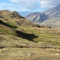 Our lodge on the riverbank in Cusipata is very fine and our host Americo is great company. The next day, we avoid the main traffic by setting off early and, after a few km, we are climbing steeply to reach the 3600m level of a series of four quiet lakes. Now we can take our time and enjoy the views and colors!
