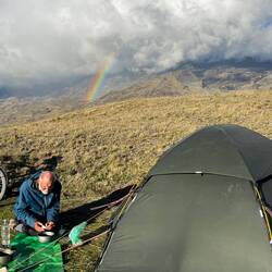It is really a very nice spot! We spend the night and the next day in the mist in company of birds, a great play of light and clouds, a good deal of rain and the occasional rainbow. Little is seen of Mt Ancohuma, however.
