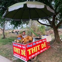A cause de toute cette longue attente, je n’ai pas pu me rendre à l’endroit que je souhaitais pour le coucher du soleil, mais j’en ai quand même profité sur le chemin du retour. Partout sur le bord de la route était vendue de la viande de chèvre, la chèvre (morte) étant exposée et découpée directement devant vos yeux.