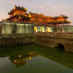 Un peu la course pour faire un saut à Hué, visiter l’ancienne cité impériale, pour la première fois sous le soleil depuis des semaines. Deux des bâtiments principaux étaient en travaux mais l’immensité et la beauté des lieux suffisent largement à en prendre plein les yeux. Pas le temps pour visiter les tombes des empereurs, ni pour faire un tour de bateau sur la rivière des parfums. Resto très sympa et surtout salon de thé comme j’en rêvais, où j’aurais pu rester des heures.Read more