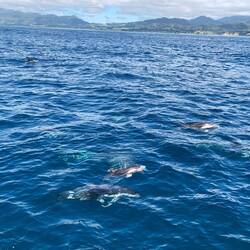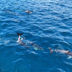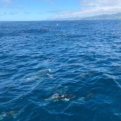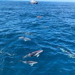 Magique ! Baignade avec des dizaines de dauphins… particulièrement craquant de voir les bébés avec leurs mères et les différents sauts.