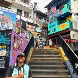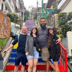 From tiny mountain villages to one of Colombias main cities: Welcome to Medellin! We were excited to meet our friend Milena for a visit - even more so when Sebastian also sneaked up as a surprise visit and early birthday present for Alina 🥹🫶🏼 (credits to the boys for keeping his visit a secret for a full month!). So the four of us explored Medellin as best as we (safely) could by eating at a lot of places, drinking at a lot of places, riding cable cars and the metro, doing a walking tour through the infamous Communa 13 district and enjoying the beautiful view on the city on our shared terrace.