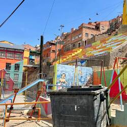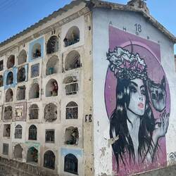 The cemetery is certainly not the only place with murals, mind you. As with so many cities in south america, the colourful and huge paintings can be found all over the city and invite you to stop and marvel every each and other step 😲. La Paz even has one whole neighbourhood completely painted in bright colours, a super fun variety for the eyes in the midst of the otherwise plainly brick-red buildings of south america 🌈!