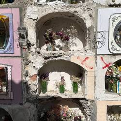 La Paz, Bolivias inofficial capital and the best place for foodies!! It is super busy with locals in traditional clothing, famous for its (rather weird) witch market with all the mummified and stuffed baby lamas, features several cable cars running all over the city and we absolutely loved its vibe. Right next to the very local area of the witch market, where we had our base for our stay in la Paz, was the super colourful tourist area which is lined with souvenir- and clothing stores, trendy bars and lots and lots of the usual very instagrammable decorations, such as a series of umbrellas being hung over the alleys just for the sake of looking pretty (don’t get me wrong, I’m loving it the same as everyone else 🫶🏼). Furthermore, the city has the most beautiful cemetery we’ve ever seen: the coffins are ‘stored’ in constructions which can be as high as a two-story house, and each ‘coffin nook’ has a little window in front where friends and family can display anything they want in memory of the deceased - photographs, flowers, but also sweets, coca cola, beer and cigarettes are on display and tell you a little bit about the deceased. Super interesting to roam about, and all the very modern and beautifully done murals throughout the cemetery make it a place where you can easily spend hours!