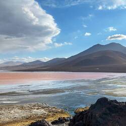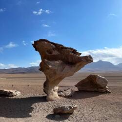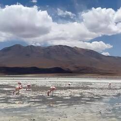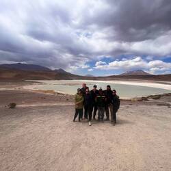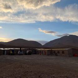Further into the Siloli desert we stopped at the ‚stone tree‘ - nice but no highlight - and a Vizcocha-observing spot/obviously feeding place (an andean rodent which belongs to the Chinchilla family and looks like a weird mixture of rabbit and squirrel) where we were a tad disgusted by the tameness (and fatness) of the Vizcochas… But the lava stones, which are the actual attraction at this stop, and the green of the desert moss patches were still lovely to see! The last highlight of the day was the Laguna Colorado, which is a gorgeous red-blue-white lagoon again packed with flamingos. Supergorgeous!! After this last lovely stop we managed to get to our habitation for the night rather early and even got a decent dinner AND some beers, pingpong and pool table action in a „bar“ nearby, enjoying the company of our group ❤️ After a short stargazing excursion in the freezing cold of the desert (hence short 🥶) we all headed to bed early for an early start the next morning.Read more
