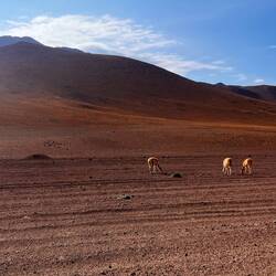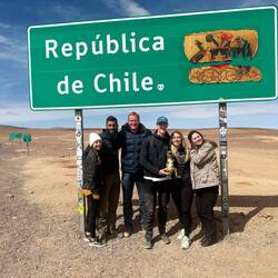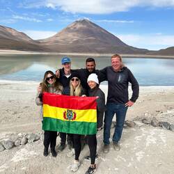 On the last day of our trip we git up early to catch the sunrise over the volcanic geysirs called ‚Sol de la Mañana‘ - the colours of the sunrise just matched perfectly with the warm colours of the volcanic landscapes and was magical (even though very stinky)! Seeing geysirs was just another awesome first-ever on our tour through the Bolivian outback 😍 Some more driving and we arrived at the Polques Hot Springs, which really deserve their name with a water temperature of about 37 degrees (in very stark contrast to the air temperatures which we guess had been a good bit below 10 degrees that morning 😅). What a relaxing way to enioy the beautiful view on another beautiful laguna (even without flamingos this time), we were very intrigued to just stay a little longer… fortunately though, we did not, as we would have had to have skipped the next top attraction of our short last day: the Salvador Dali Desert. Alina fell in love with this place right away and swears to that day to come back to explore the place in more detail (and not just from the parking lot 😉). The beautiful sand dunes with the stone formations which gave the desert its name (as it looks like a Salvador Dali painting) and - especially - the one-of-a-kind marble mountain range on the other side of the desert view point: rarely have we seen such beauty!! And we really hated to leave, but time got short for us three who headed to Chile directly, so we had to say goodbye too soon 🥹 and heading to the very last stop: the Laguna verde, which is called ‚green lagoon‘ due to an algae species usually inhabiting the lake, but seems like nobody was at home during our visit 🤷🏻♀️ So not a very satisfying last stop, but at least we got a superduper last group picture from our crew before we split up and three of us headed to the Chilean border. At the border, once the waiting for the other tourist buses was done (bringing fresh food such as veggies and meat into Chile is strictly forbidden, and some not very clever people tried to get through the luggage scanner with bags full of sausages 🤦🏻♀️), everything went smooth for us and we arrived safe and sound in country number 10: Chile! 🇨🇱Weiterlesen