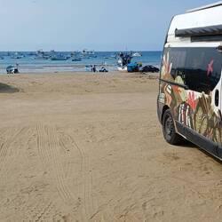 Saliendo de Manta nos vinimos a esta tranquila playita donde el viento soplaba fuerte y así nos adentramos en esta ruta.
