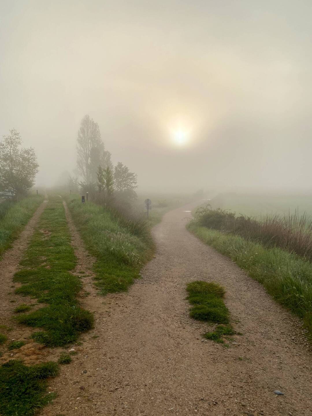 Leaving Boadilla this morning we walked along the tree lined riverside path and with the sun peeping through the fog it was aMeer informatie