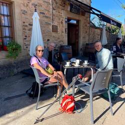 Stepping out of our hotel we were greeted with a crisp and sunny morning which promised to get warmer by the hour. We passed by a quaint church and onto a gravel path as we said goodbye to the city. The only sound disturbing the silence was the crunch of our shoes on the gravel path. Any excuse for a coffee we stopped in a rustic village not far into our walk and there met with Camino friends chatting before we all moved on.