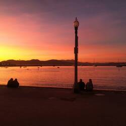 Von dort liefen wir weiter am Wasser entlang Richtung Golden Gate Bridge. Wir suchten noch eine Drogerie auf, weil Puml ihre Haare nachfärben wollte. Anschließend setzten wir uns an den Strand und guckten uns den Sonnenuntergang an. Die Farben waren - wie schon den Abend zuvor - einfach unbeschreiblich schön! Und es war soo warm! Würden sie bei Sacramento und LA nicht gerade mit den heftigen Bränden kämpfen müssen, würde ich an dieser Stelle sagen, wie geil das Wetter einfach ist! Badewetter.. Aber ja, normal ist es definitiv nicht für diese Zeit, wie uns auch ein Mann an einer Bushaltestelle erzählte. Normalerweise sei es Ende Oktober schon viel viel kälter.. Ai ai ai. Mal sehen, ob es unsere Fahrt nach Las Vegas beeinflusst..