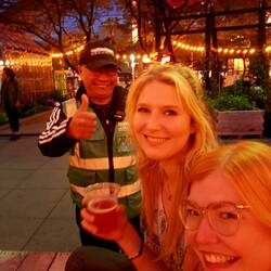 Auf dem weg ins "Quartier Latin" fiel unser Blick auf einen kleinen Platz mit Schirmen, Bänken, unzähligen Lichterketten und Musik, auf dem sich viele junge Leute tummelten. Wir stellten die Räder ab und tranken dort ein (zwei) Bier für jeweils 5,50$. Bezahlbar (Puml hat wieder mal ausgegeben😅😘). Es war so wunderschön da! Lichterketten, Livemusik und Bier - was brauch man mehr! ✨😁 Wir unterhielten uns noch kurz mit der Verkäuferin und bekundeten ihr überschwänglich unsere Liebe für diese Stadt und wie wir an nur einem Tag Feuer und Flamme für Land und Leute wurden 😂💖 Daraufhin erzählte sie uns dann, wie sehr sie Berlin mochte. 😄