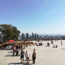 Nachdem wir uns gestern Abend eig dazu entschlossen, Samihs Wohnung nächsten Tag wieder zu verlassen, waren wir uns heut morgen schon wieder nicht so ganz sicher. Er machte uns unaufgefordert Tast mit Rührei zum Frühstück und bot im nächsten Moment an uns an zwei Aussichtspunkte auf dem Mont Royal zu fahren, wo wir sowieso noch hin wollten. Als er für seine Morgenzigarette vor die Tür ging, sahen wir uns mit einem gequälten Blick an. Wir waren so hin und hergerissen und wussten einfach nicht wo hin mit uns. Es war einfach zu eng und für 3 Personen und einer Katze, zumal man wegen letzterer nicht mal die Fenster weit öffnen konnte, da er im Erdgeschoss wohnte. Aber wie konnten wir jmd verlassen, der sich soo bemühte und so über unsere Gesellschaft zu freuen schien. 😔 Wir überließen die Entscheidung erstmal wieder Zukunftsbella & Zukunftspuml und fuhren gemeinsam zu den beiden Aussichtspunkten, von denen wir einen hübschen Blick auf die Stadt hatten. Wir füttern an wunderschönen Einfamilienhäusern vorbei und ließen uns an einem Park absetzen. Wir bedankten uns nochmal überschwänglich für alles was er bis dato für uns getan hatte, doch es war total selbstverständlich für ihn. Für uns hingegen immernoch unglaublich!