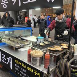Working in KoreaTravelerFood! February 4, 2019 in South Korea ⋅ ☀️ 0 °C 🧧 Chinese New Year, of echt New Year in Korea: Sunny maakt de traditionele dumpling soup voor de hostel 🍲In Myeongdong, waar de toeristen shoppen in Seoul 😰 ga ik volop kousen kopen, en stoot ik op een onverwachtse uitgebreide food market..Read moreSee translation1 like Show trip