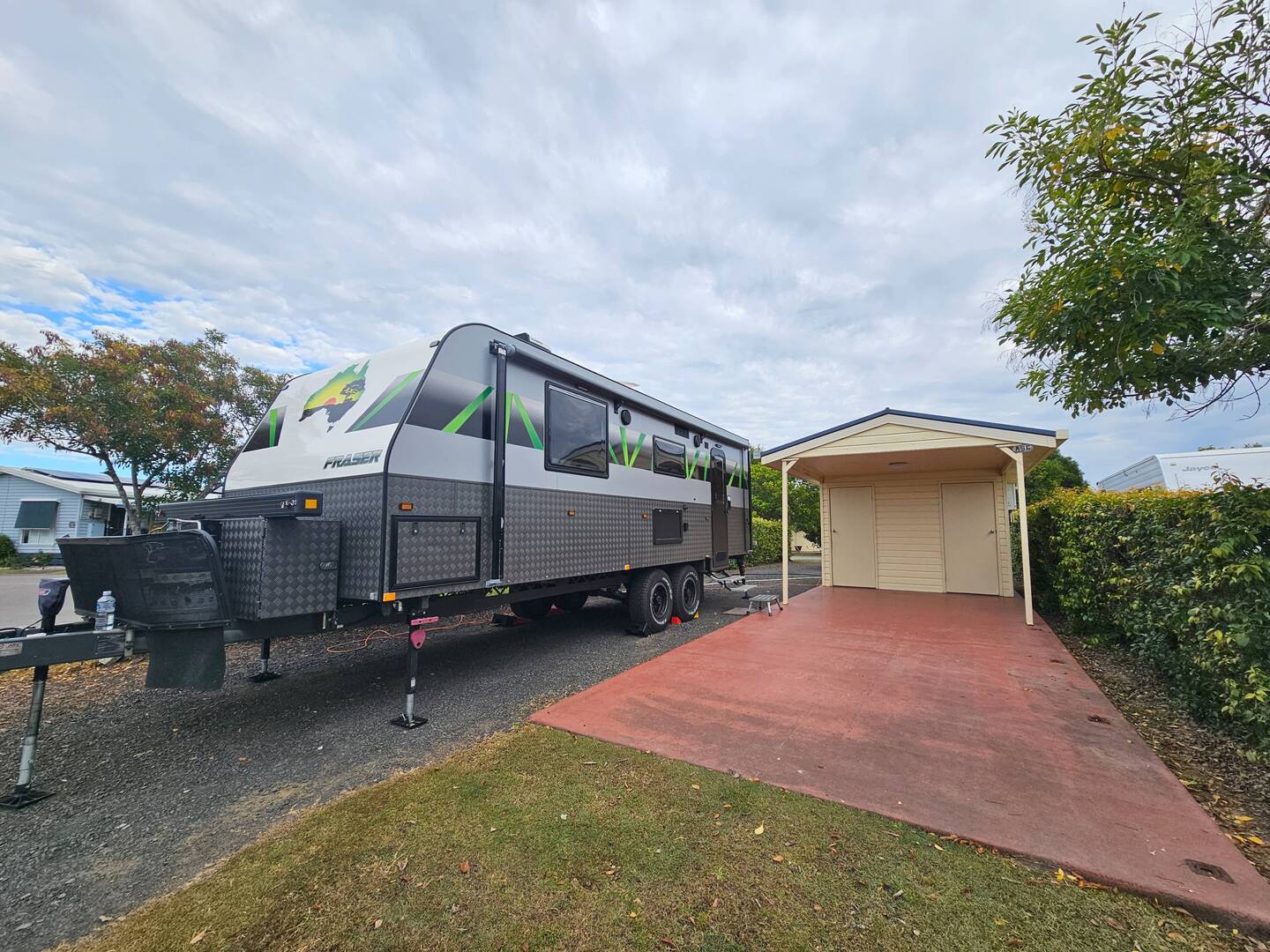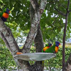 The caravan park where we are staying is quite nice. There are lots of pretty rainbow lorikeets about. We have our own private ensuite, with a storage room for the bicycles and our own personal clothesline.