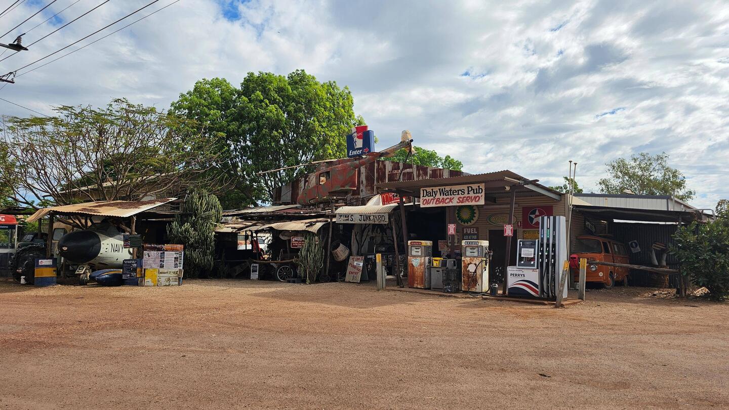 Daly Waters has a sensational outback pub. The atmosphere is "eclectic," and it was a brilliant stopover for the night. This quirky pub is clad in corrugated iron and crammed with decades ofLæs mere
