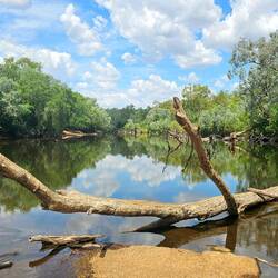 After exploring the town, we headed back to Homestead Caravan Park, where we are staying. We went for a walk along the Katherine River; it was pleasant but extremely hot. The river still has quite a bit of water, but much of the riverbed is quite dry. It will be spectacular when the wet season arrives.Read more