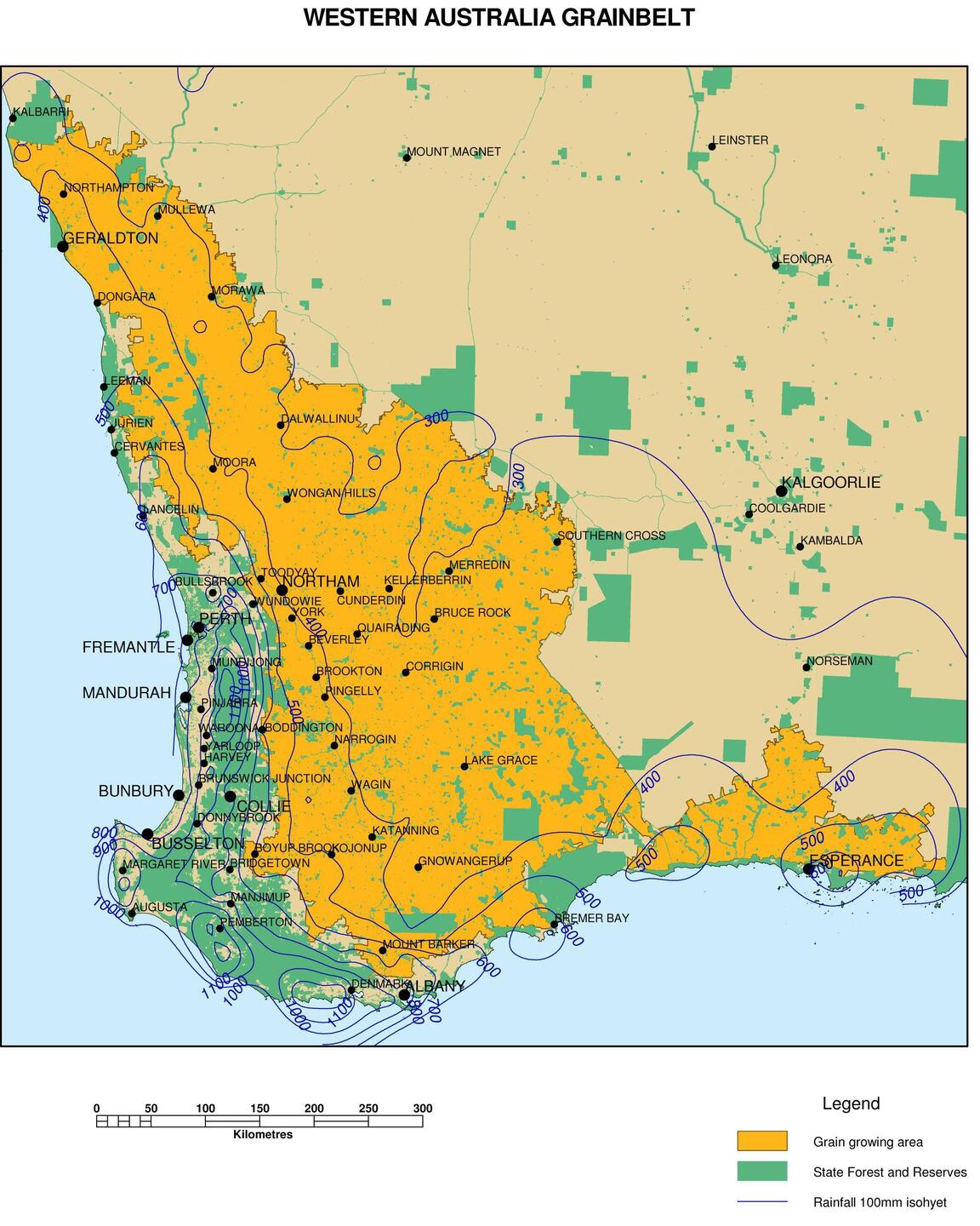 The state’s grain production area, known as the ‘wheatbelt’, contains around fifteen million hectares of arable land across the south-west corner of the state. Around nine million hectares of this is cropped each year.