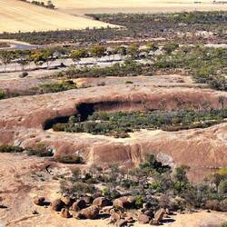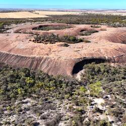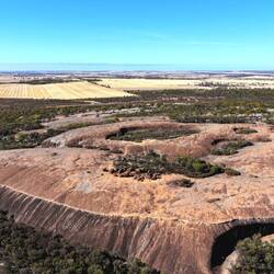 Such walls are common on many similar rocks in the Wheatbelt. The flared slopes are argued to have formed by the concentrated chemical weathering around the base of an inselberg by groundwater.