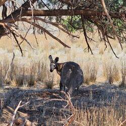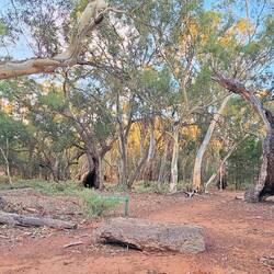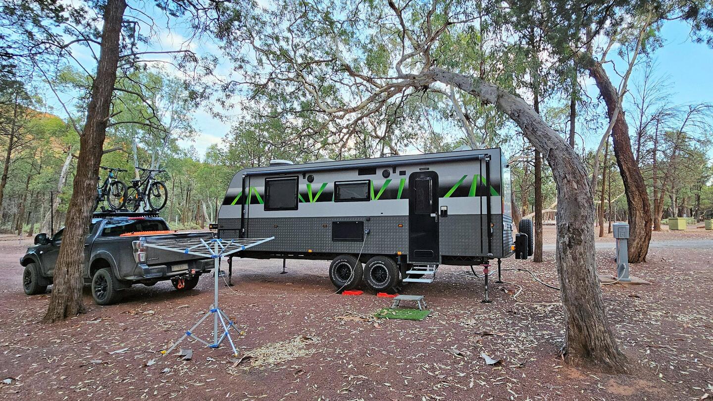 We are currently in Wilpena Pound Resort caravan park, located in the Flinders Ranges, there is one other small van in here with us.
