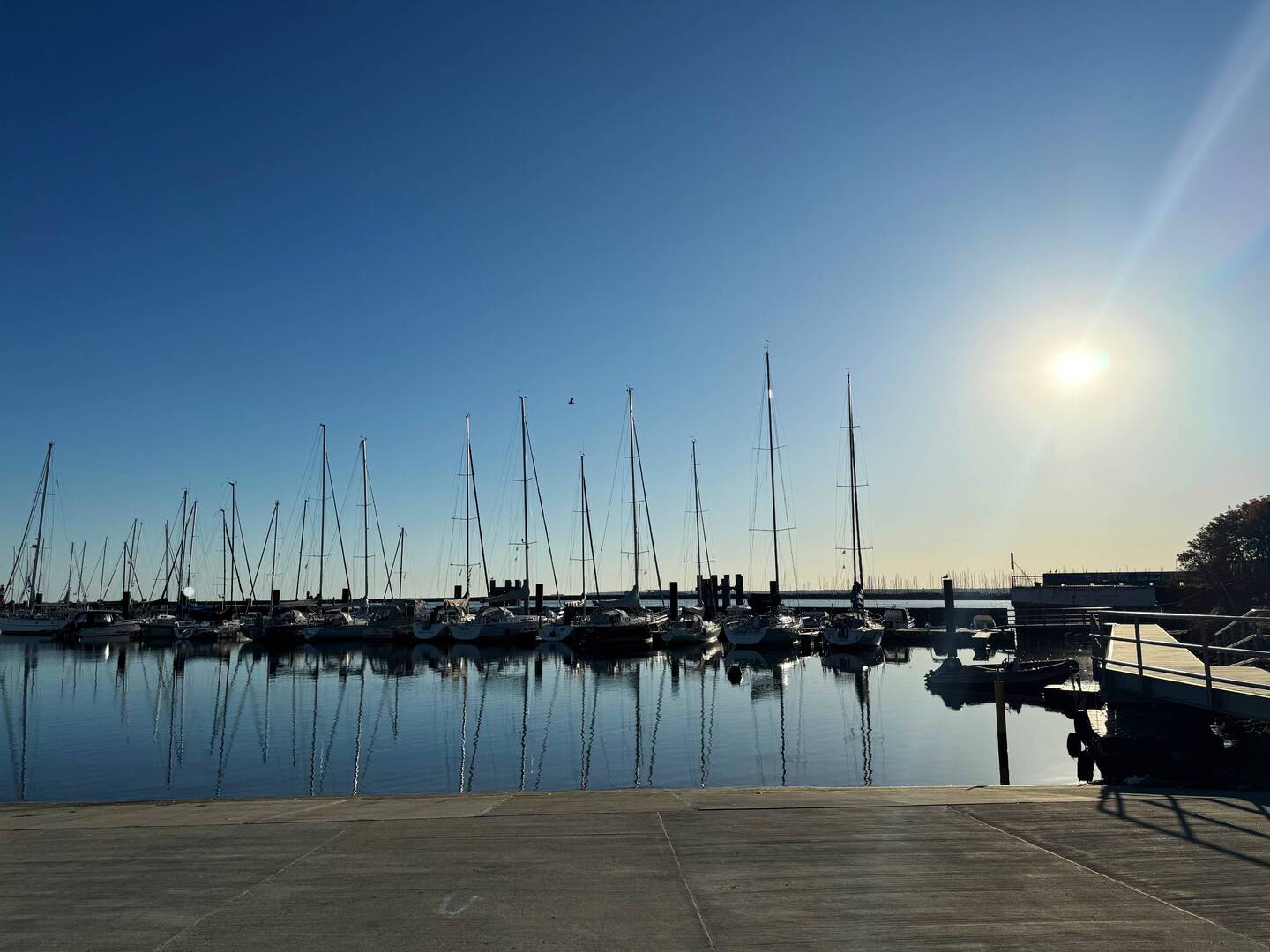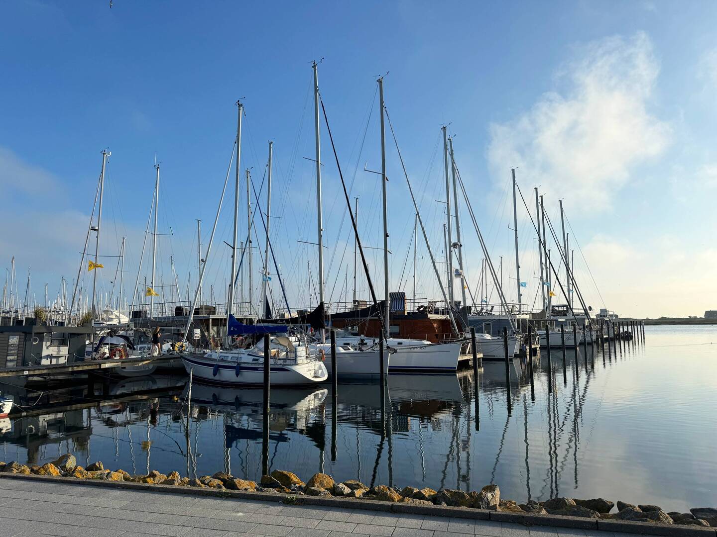 Der Kontrast zwischen dem was ich acht Stunden erlebt hatte und dem Frieden im Hafen vom Gedser hätte nicht größer sein können. Hier gab es keine Welle. Keine Wind. Die Regattaboote schaukelten friedlich in ihren Boxen und es herrschte Heile Welt.