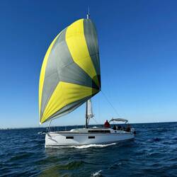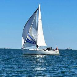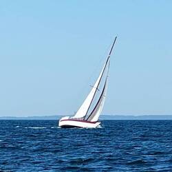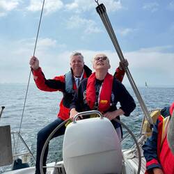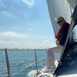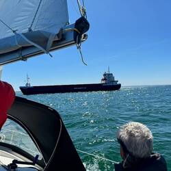 Tat er auch. Der Wind hatte eine Stärke von bis zu 6 Beaufort und bließ die Youtoo mit 4,5 - 5 Knoten Richtung Heimathafen.