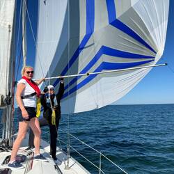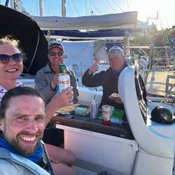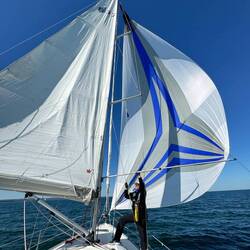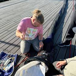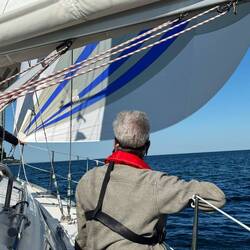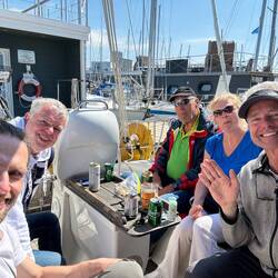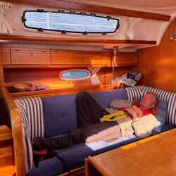 Ich kurbelte Markus im Seemannsstuhl in den Mast. Dann legten wir das Genaker am Hafen aus, um es zu trocknen. Wie der Zufall es so wollte, kam Jonas, ein gelernter Segelmacher, vorbei und flickte uns unser Genaker. Zwischenzeitlich holte ich die Fischbrötchen. Ein ereignisreicher Tag ging gelungen zu Ende und ich freute mich auf die nächste Etappe.Read more