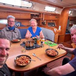 Wir legten ohne größere Probleme an und ich lernte die Crew der Inspiration kennen. Andrea und Guido waren ebenfalls im Segelclub Eschwege. Dazu war Frank an Bord. Er war ein sehr erfahrener Segler und aus Kassel.