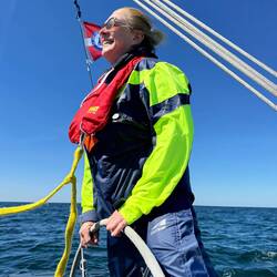 Bei diesem ruhigen Kurs wagte ich mich auch ans Ruder. Die Kraft von Wind und Welle ist gewaltig. Nach anfänglicher Nervosität genoss ich die Kontrolle über die Gewalten und unser Boot.