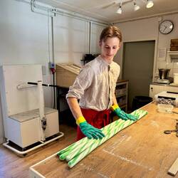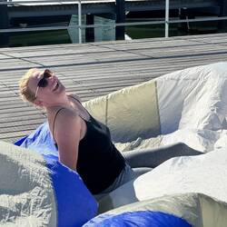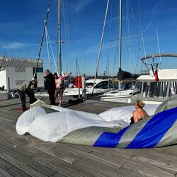 In Warnemünde angekommen hatten wir im Wesentlichen drei Aufgaben. Wir mussten die Überreste vom Genaker, welche noch im Mast hingen, runter holen. Dazu mussten wir das Genaker auslegen, trocknen und den Schaden begutachten und reparieren. Und wir mussten uns Fischbrötchen organisieren. Was soll ich sagen - wir haben alles geschafft. Doch zuerst gab es den Anleger :)
