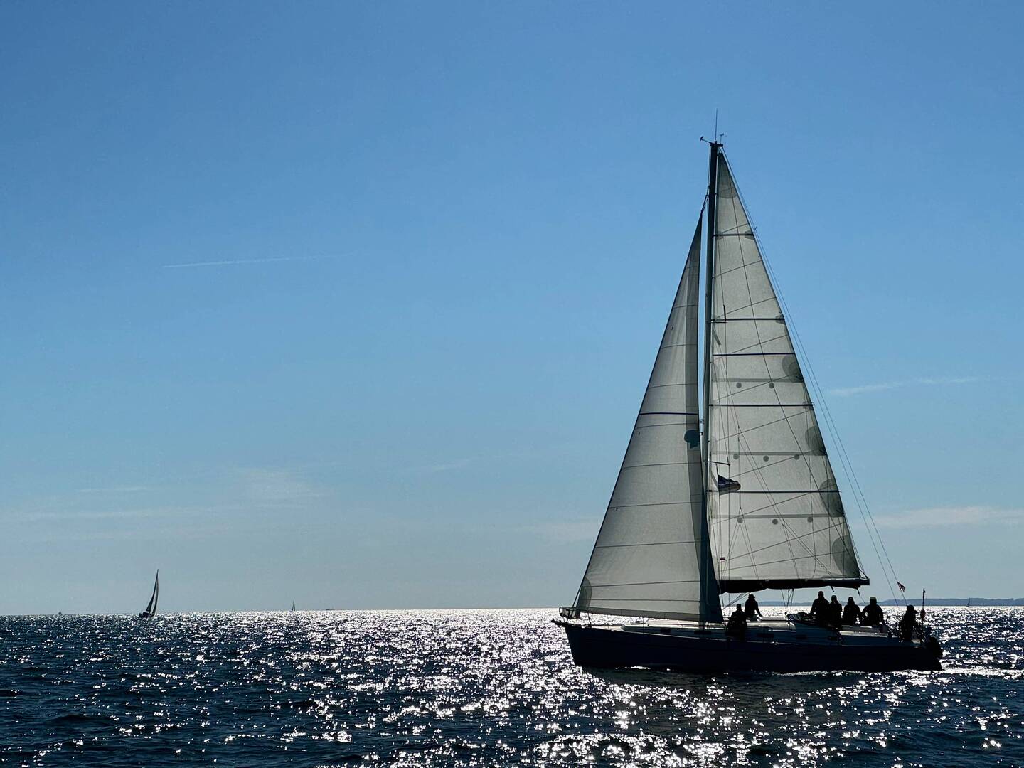 Frank und Guido, von der Crew der Inspiration, empfahlen uns, nur mit der Fog zu segeln. Wir hatten Vorwindkurs und so sollte uns der Wind sanft nach Heiligenhafen schieben.