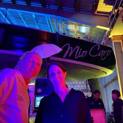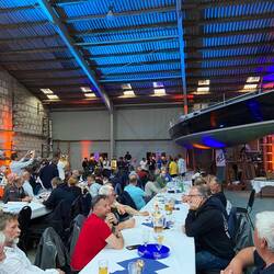 Die Crews der Youtoo und der Inspiration saßen zusammen. Andrea, Guido und Frank von der Inspiration. Annett, Rocco, Markus und ich von der Youtoo. So ne Woche gemeinsames Segeln schweißt schon irgendwie zusammen. Es war ein sehr schöner und besonderer Geburtstag. Apropos Geburtstag - plötzlich hieß es während der Siegerehrung, dass wir zwei Geburtstagskinder in der Halle hätten. Ich schaute meine Leute ungläubig an… Die haben doch nicht etwa? Egal - die Geburtstagskinder sollten bitte vor kommen. Zögerlich setzte ich mich in Bewegung. Mit mir taten das noch drei weitere Personen und so standen überraschender Weise nicht zwei sonder vier Geburtstagskinder vorn. Die ersten Beiden erhielten die vorbereiteten Flaschen Wein. Nun musste improvisiert werden. Und wenn ich in den vergangenen Tagen etwas gelernt habe, dann, dass Segler sehr gut improvisieren können müssen. Auf See passiert ständig etwas unvorhergesehenes.