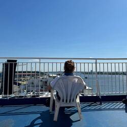 Ich bin auf der Fähre von Rostock-Warnemünde nach Trelleborg.