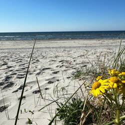 Wir frühstückten auf der Youtoo und das Meer hatte mir ein paar Geburtstagsblumen an den Strand gespült, die Markus vom