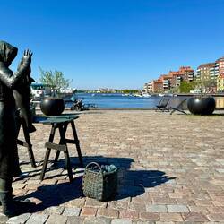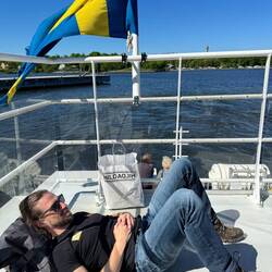 Wir gingen zurück zum Hafen und wollten ein Stück mit dem Boot fahren, welches die vielen Inseln Stockholms miteinander verbindet. Eine dieser Stationen war auch Luise‘s, welche sie nutzt, wenn sie nicht mit dem Fahrrad ins Büro kommt.