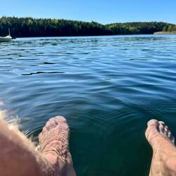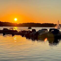 Wir waren beide bereits müde und Helga hatte eine fantastische Idee, diesen Tag würdig ausklingen zu lassen. In der Nähe ihrer Bleibe gibt es einen schönen See. Wir wechselten bei Helga kurz unser Fortbewegungsmittel und fuhren an den See. Vom Steg aus ließen wir die Füße im Wasser baumeln.