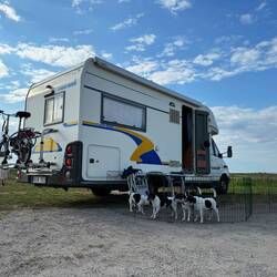 Ich gehe zurück in die Sunny, schließe die Dachluke, schalte die Heizung ein und kuschle mich wieder ins Bett. Das Gebläse fährt hoch und begleitet vom Klackern der Dieselpumpe steigt eine wohlige Wärme auf. Ich schlafe noch einmal ein...