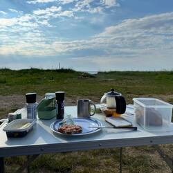 Da wir diesmal einen anderen Kurs fuhren und der Wind uns größtenteils von achtern schieben würde, erwarteten wir eine ruhige Überfahrt - von Markus liebevoll als Kaffeefahrt angekündigt. Annett bereitete morgens tatsächlich etwas Kaffee in einer Thermoskanne vor und vielleicht war heute wirklich der Moment der Erdbeerschnitte gekommen, die uns schon einige Tage begleitete.