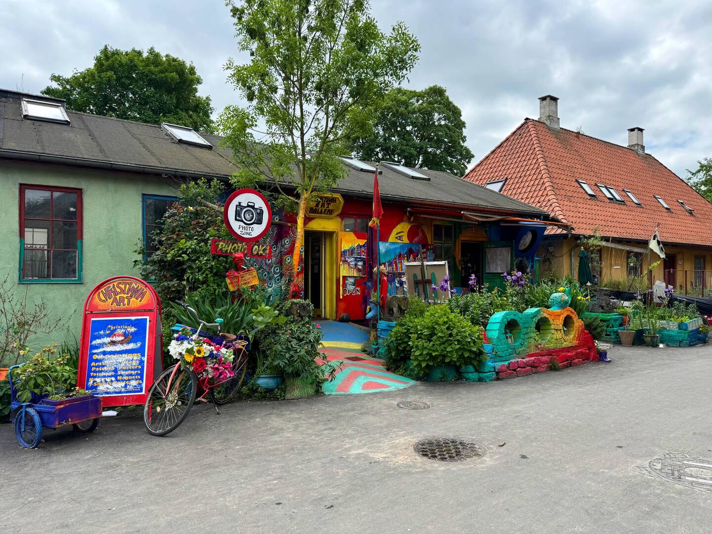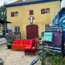 Im Zentrum von Christiania angekommen, kaufe ich noch ein paar Andenken in einer Kunstgalerie und gönne mir einen Kaffee. Mich umgibt der Cannabisgeruch vom Nachbartisch. Ich erinnere mich an das letzte Mal, als ich hier war und wie besonders eine solche Situation damals für mich war. Nach 15 Jahren Berlin weckt die Situation eher Heimatgefühle und ich denke bei mir - irgendwie ist Berlin Christiana in groß. Allerdings mit all den Problemen, die Größe mit sich bringt. Hier scheint alles sehr entspannt und friedlich. Der Friede-Freude-Eierkuchen-Eindruck scheint aber auch hier zu trügen. Der Eingang zur bekannten Pusher-Street ist mit einem Schild versperrt. Darauf wird von gewaltbereiten Gangs berichtet und dass sich die Community darauf verständigt hat, die Pusher-Street umzugestalten. Es geht um Kulturräume, Spielplätze für Kinder und Sitzgelegenheiten für Erwachsene. Schöne Vorstellung, denke ich bei mir.
