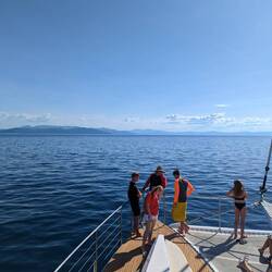 Das Mittagessen an Bord ist super lecker! Es gibt diverse Salate (Nudeln, Kartoffeln, griechisch), und als warme Speise gibt es Reis und eine Art Chili (vegetarisch und mit Fleisch) Sehr lecker! WirRead more