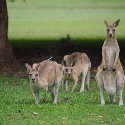 Katti hat durch Zufall auf Google Maps gelesen, dass es in Mareeba einen Golf Club geben soll, wo sich ganz viele wilde Kängurus tummeln sollen. Da fahren wir heute hin.