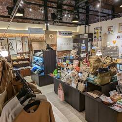 Neben dem Bahnhof gibt es die A-Factory. Es dauert etwas bis wir verstehen, dass das "A" für "apple" steht 😄 In den Hallen ist etwas Gastronomie, eine große Verkaufsfläche wo man diverse Apfelbezogene Mitbringsel einkaufen kann, und eine Cider... wie nennt man das?....Brauerei? Brennerei? Kelterei? Manufaktur 🙃.