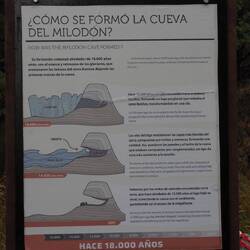 Als es gegen 12:30 etwas aufklart, packen wir unsere Sachen und fahren zu den "Cuevas de Milodón". Ein paar uralte Höhlen, in denen der erste europäische Siedler in West-Patagonien, Herman Eberhard, Fellreste eines seit über 10.000 Jahren ausgestorben Riesenfaultiers (das "Milodon") gefunden hatte.