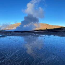 Ja, es sind viele kleine, und einige größere Geysiere. Insgesamt über 80 Stück. Und "El Tatio" sind die höchstgelegenen Geysiere der Welt. 4.325m hoch. Ja, die Luft zum Atmen muss man sich langsam suchen. Zudem das drittgrößte Geysierfeld auf der Erde. Nur Yellowstone und "Dolina Geiserow" in Kamchatka sind noch größer.