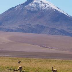 Zwischenzeitlich nähert sich auch eine kleine Herde Vicuñas (das "andere" Guanaco). Es gibt sogar Nachwuchs. 🦙