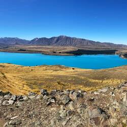 Nach einem gemütlichen Frühstück kommen wir am Lake Tekapo an. Der Parkplatz am See ist kostenlos. Man darf nur nicht übernachten. Da hat der benachbarte Campingplatz sicher was dagegen.