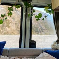 Wir sind in einem Tal. Und es pustet draußen ziemlich. Der Camper wackelt das ein und andere Mal ordentlich.