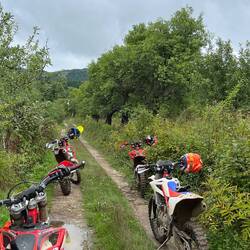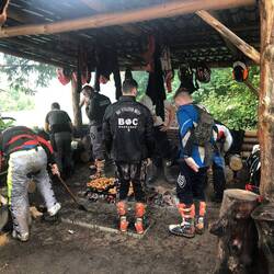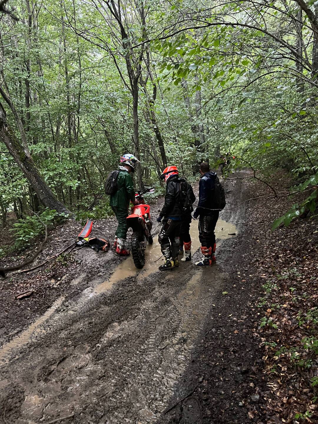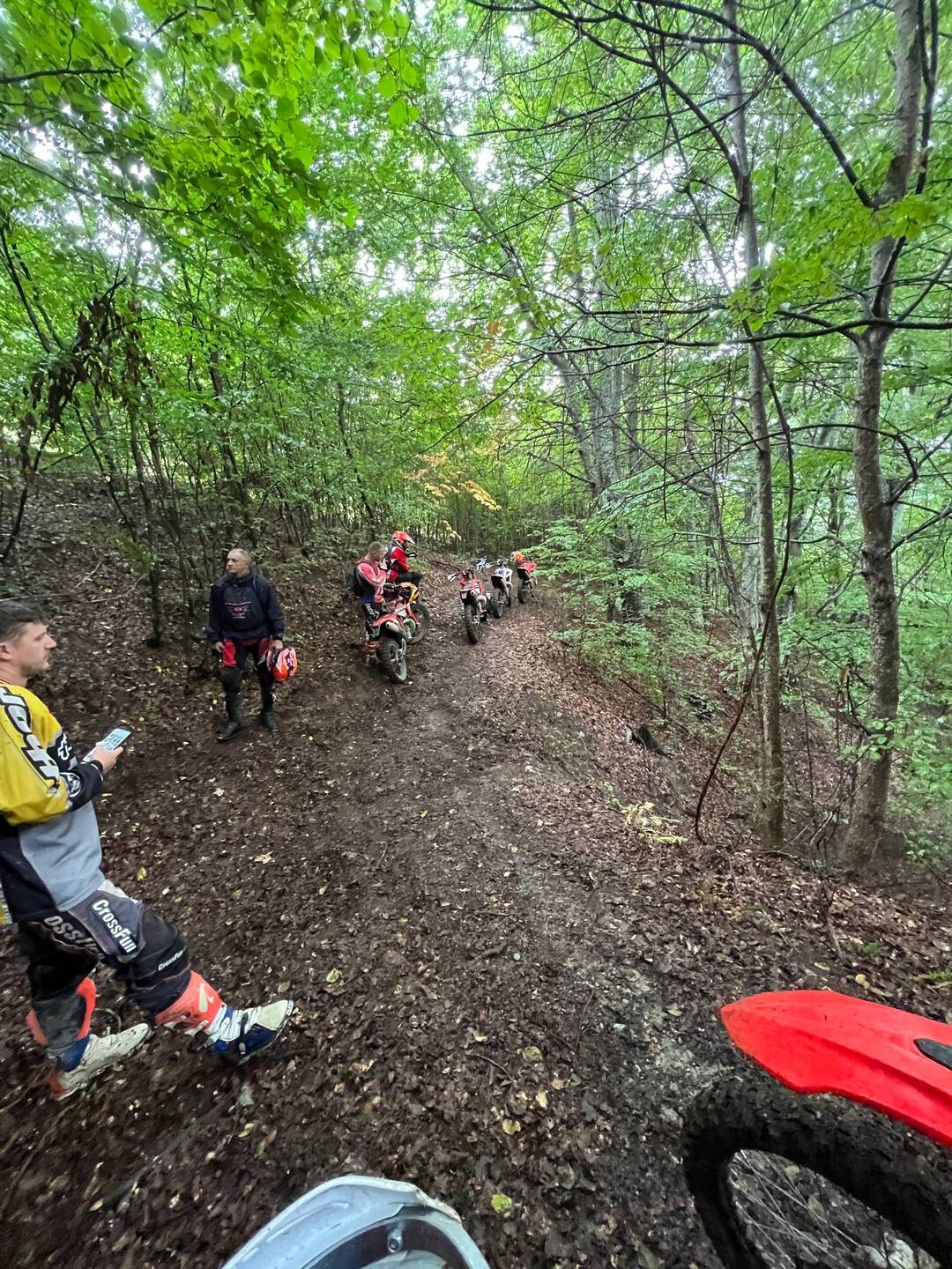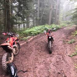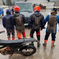 Los gefahren heute morgen noch in halbwegs trockenen Bedingungen, hat es gegen Mittag angefangen ordentlich zu regnen. Bei nassen und kalten 16 Grad durch den Wald über Stock und Stein.