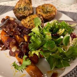 About 6.30 we set the Yorkshires off and running and subsequently had them with some chorizo sausages and salad . . . with a new untried salad dressing . . . all good!!