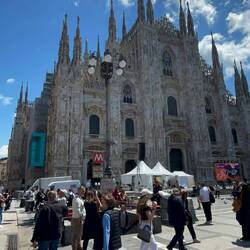 11:10 geht mein Zug trotzdem hab ich ich früh das Ostello bello Milano centro verlassen. Ich wollte der Stadt beim Aufwachen zuschauen einige Zeichnungen machen und frühstücken. Beim ziellosen treiben lassen fand ich unweit vom Bahnhof eine schöne verwinkelt, erkerreiche Kirche. Beim eintreten fand ich schon eine kleine Gruppe Menschen vor, emsig beschäftigt mit dem Schmücken der Kirche es erklang Orgelmusik beim Üben einiger bekannter Kantaten. Die Kirche war nicht sonderlich groß aber dafür um so schöner. Anders als die vielen andern Kirchen die ich bisher gesehen habe. So filigran schienen die Säulen und Träger dass man fast befürchtete sie müsse zerbrechen. Der Architekt dieser Kirche verstand sein Handwerk. Alles war in hellen farbigen Steinen gestaltet. Ich denke zumindest das es Naturstein ist. Die Fenster ließen viel Licht ins Innere. Alles wirkte nicht protzig. Ein Meister des goldnen Schnitts war hier am Werk. Während ich noch am staunen war tat sich etwas in der Kirche es kamen drei Priester und die zuvor erwähnten Besucher nahmen auf den Bänken platz. Eine unerwartete Messe. Erst während der Messe bemerkte ich dass diese Messe einem alten Ehepaar galt die ihre goldene oder eher eine danach folgende Hochzeit feiern durfte. Welch eine schöne Überraschung. Aus meinen Mitbringsel wählte ich einen Rosenkranz als Geschenk für die „Braut“. Sie freute sich sichtlich darüber, ihre Tochter managte unser Gespräch. Plötzlich waren alle Gäste um uns versammelt was mir dann sichtlich peinlich war. Vergeblich. Ich stellte mich mutig ihren Fragen.